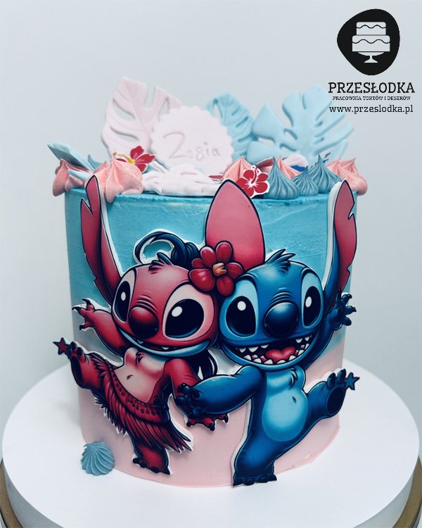 Tort z bohaterami Stich i Andzia - torty Piaseczno, Warszawa.