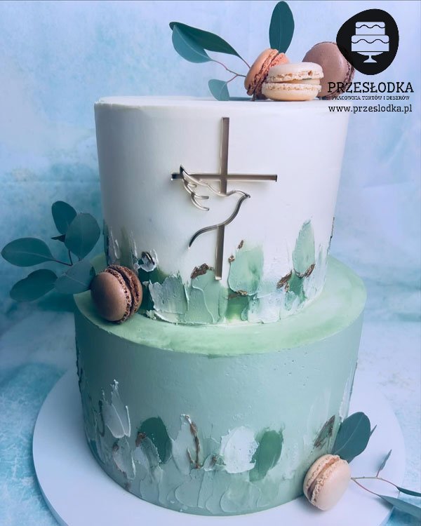Tort biało zielony na chrzest