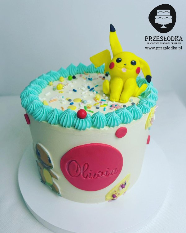 Uroczy tort dla dziewczynki z bohaterem z bajki Pokemony - Pikachu.