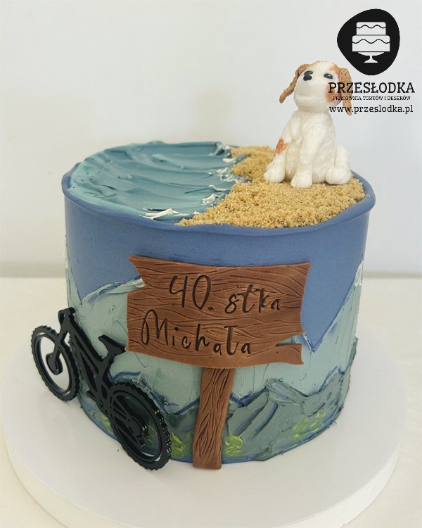 Tort góry, rower, pies