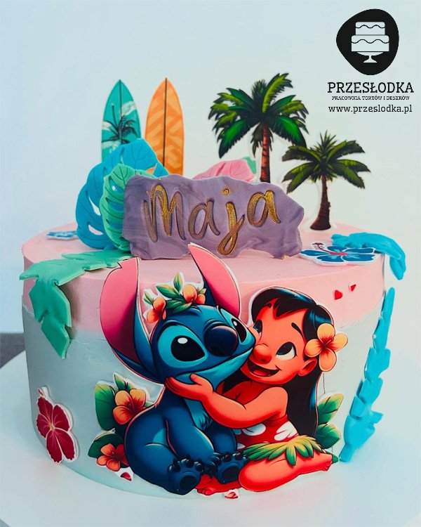 Tort dla fana bajki Lillo i Stitch. Wersja na Hawajach - torty Piaseczno, Warszawa.