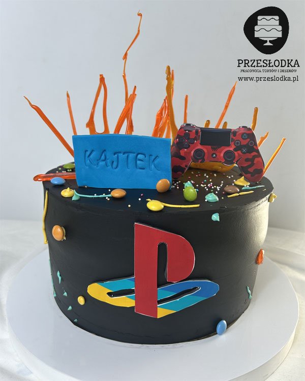 Tort dla fana i gracza w PlayStation z padem i logiem PS5 - torty Piaseczno, Warszawa.