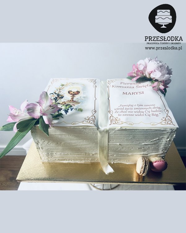 Tort na komunię w formie książki - torty Piaseczno, Warszawa.