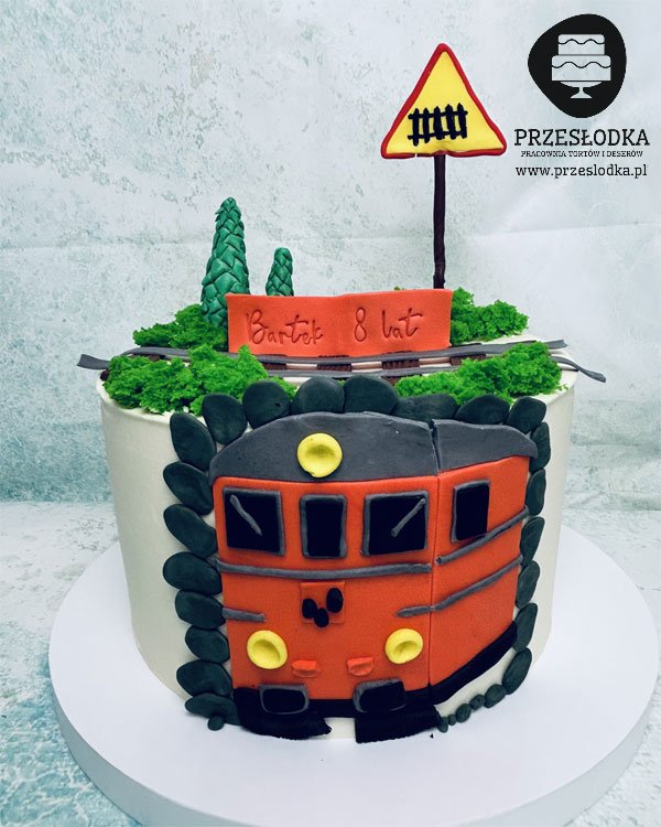 Tort z pociągiem wyjeżdżającym z tunelu dla chłopca lub dziewczynki na urodziny - torty Piaseczno, Warszawa.