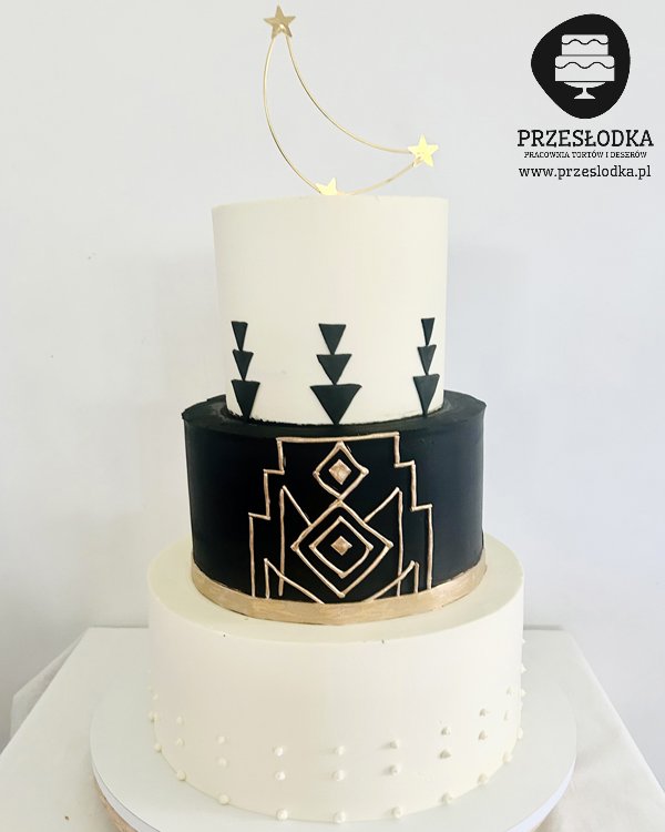Tort trzypiętrowy z topperem w kształcie księżyca - torty Piaseczno, Warszawa.