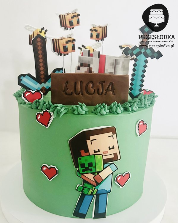 Tort Steve Minecraft. Tort w kolorze zielonym dla dziewczynki, fanki gry i filmu Minecraft - torty Piaseczno, Warszawa.
