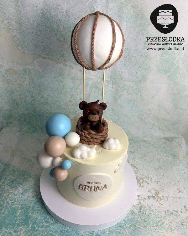 Tort z miśkiem w balonie
