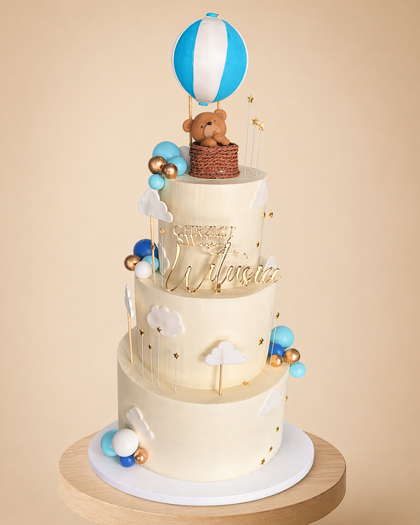 Tort na chrzciny z misiem w balonie