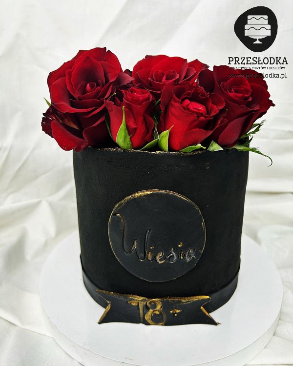 Tort okolicznościowy na różne okazje imitujący pudełko z kwiatami - ale wszystko jadalne, no może poza kwiatami. Można wybrać kolor pudełka oraz kolor kwiatów, aby dopasować tort do swoich preferencji. Torty Piaseczno, Warszawa.