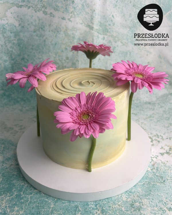 Tort z czterema kwiatami z łodyżkami. Torty Piaseczno, Warszawa.