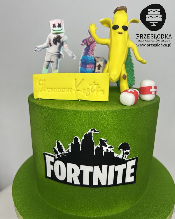 Tort z motywem z gry Fortnite. Strzelanka daje frajdę zarówno dzieciom, jak i dorosłym. Torty Piaseczno, Warszawa.