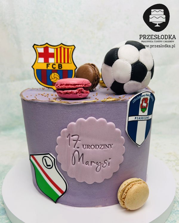 Tort dziewczęcy z motywem piłki nożnej, zawodniczki MKS Piaseczno i fanki Legii Warszawa i FC Barcelony - torty Piaseczno, Warszawa.