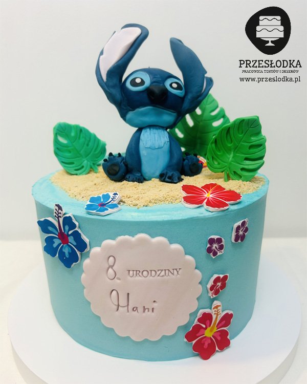 Tort z ręcznie robioną i jadalną figurką Sticha - bohatera serialu dla dzieci - torty Piaseczno, Warszawa.