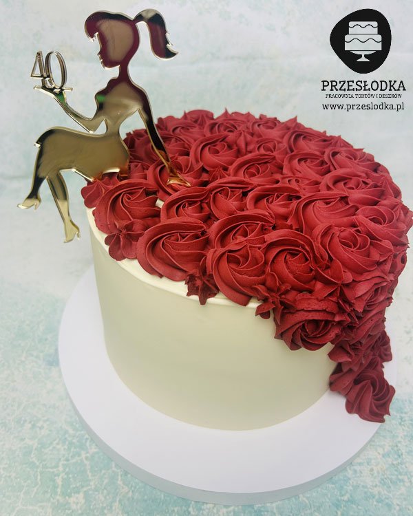Tort dla kobiety na czterdzieste urodziny z motywem kwiatowym. Kwiaty jadalne zrobione własnoręczni - torty Piaseczno, Warszawa.