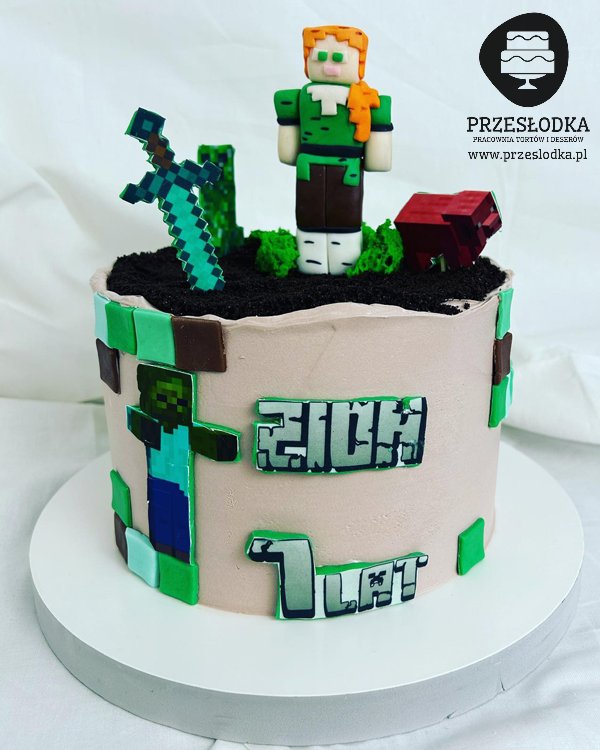 Tort z ręcznie wykonaną figurką Alex z LEGO Minecraft. Alex jest jedną z postaci, którą możemy rozpocząć rozgrywkę w świecie Minecraft. Ta zielonooka, ruda dziewczyna jest niezwykle odważna – na wespół ze Stevem przemierza kontynent wzdłuż i wszerz, poszukując surowców, hodując zwierzęta i pielęgnując uprawy. Krótko mówiąc – walcząc o przetrwanie. Torty Piaseczno, Warszawa.